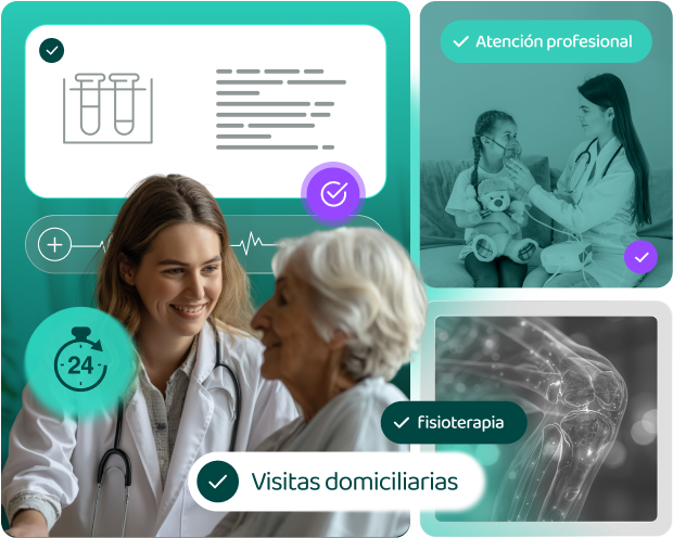 Recibe atención médica especializada presencial o por teleconsulta. Servicios como laboratorio y enfermería también pueden realizarse en tu domicilio.
