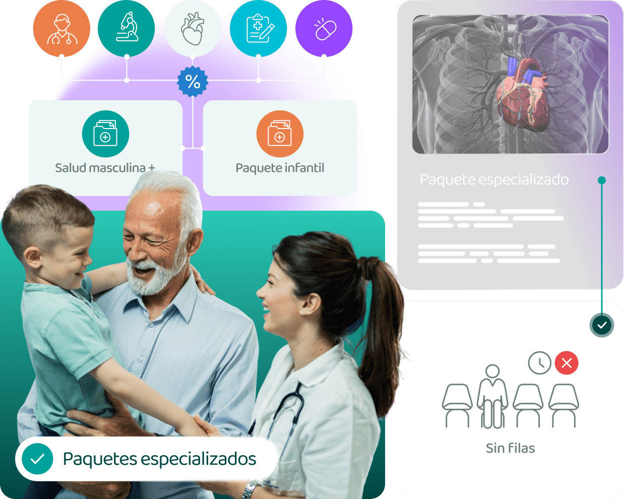 Accede a todos nuestros servicios médicos sin exclusiones ni restricciones por condiciones previas de salud.