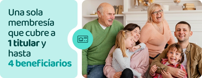 Una sola membresía que cubre a 1 titular y hasta 4 beneficiarios.